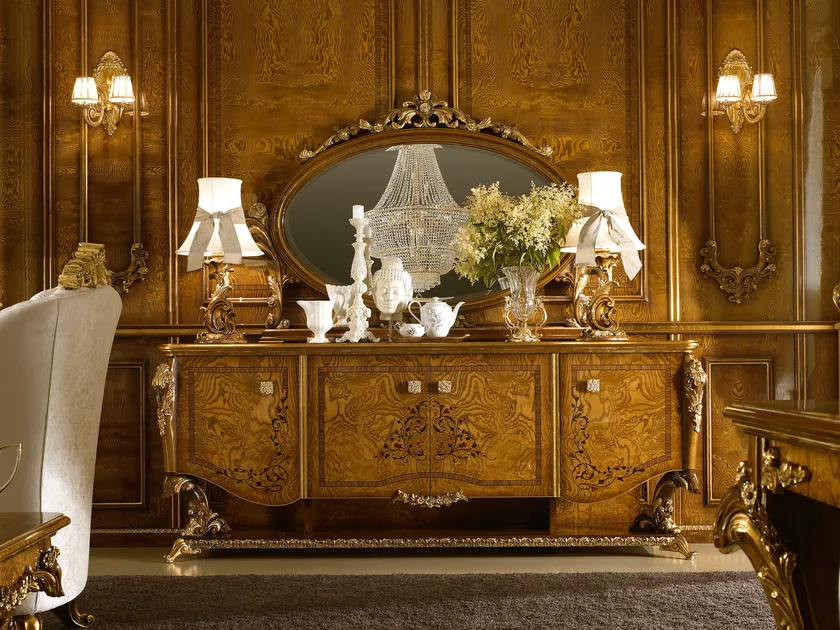Dieser Spiegel zeichnet sich durch akribische Designdetails aus, einschließlich geschwungener Linien und eleganter Kurven, die seine ästhetische Anziehungskraft erhöhen. Die kunstvollen Schnitzereien um den Rahmen zeigen das Können und die Detailverliebtheit des Kunsthandwerkers und fügen dem Stück Tiefe und Charakter hinzu. Der Gesamteindruck des DOLCEVITA-Spiegels ist anspruchsvoll und raffiniert, was ihn zur idealen Wahl für diejenigen macht, die hochwertiges Design schätzen.