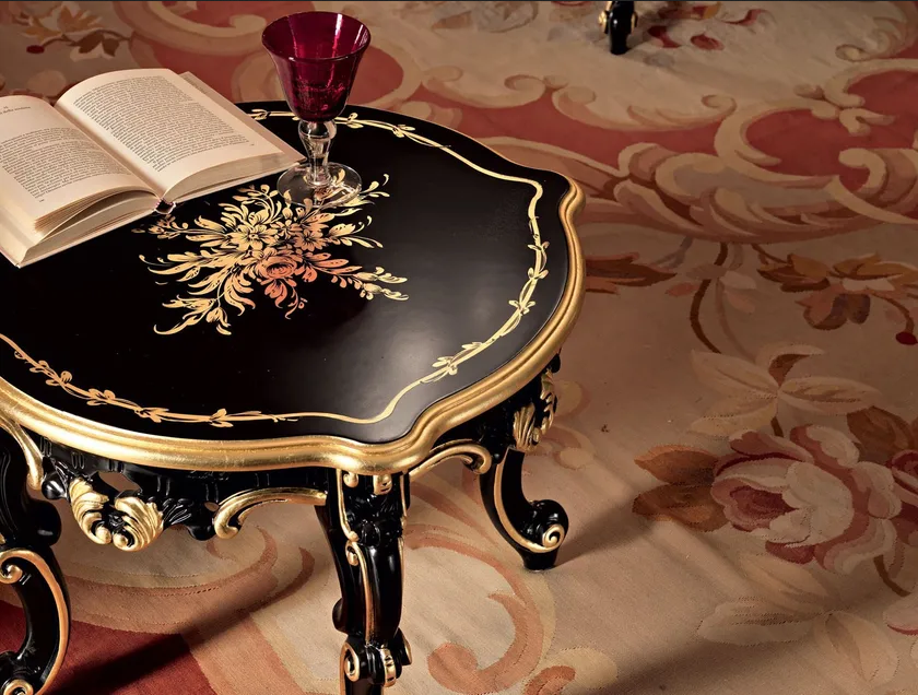 Dieser Couchtisch zeigt einen klassischen Stil, der das Wesen der italienischen Handwerkskunst verkörpert. Das Design verfügt über filigrane Schnitzereien und handgefertigte Dekorationen, die ein Engagement für Kunstfertigkeit und Tradition widerspiegeln. Die Kombination von traditionellen und modernen Elementen schafft ein visuell beeindruckendes Stück, das in jedem Raum heraussticht. Seine elegante Silhouette und raffinierten Details machen ihn zur idealen Wahl für diejenigen, die zeitlose Schönheit schätzen.