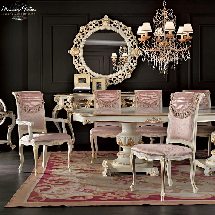 Der Polsterstuhl ist ein eigenständiges Stück, das eine Vielzahl von Einstellungen ergänzt. Er kann mit anderen Artikeln aus der Villa Venezia-Kollektion, wie Esstischen und Beistelltischen, kombiniert werden, um ein kohärentes und elegantes Interieur zu schaffen. Diese Vielseitigkeit ermöglicht kreative Arrangements sowohl in Wohn- als auch in Geschäftsräumen.