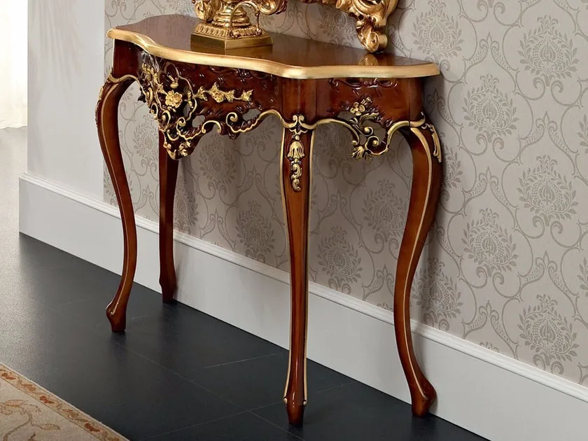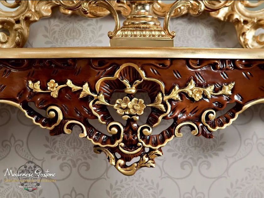 Der rechteckige Holzkonsolentisch von Modenese Luxury Interiors ist eine atemberaubende Verschmelzung von Barockeleganz und modernem Design. Mit seiner sorgfältigen Handwerkskunst und stilvollen Silhouette verbessert dieses Stück jeden Küchen- oder Wohnraum. Der Tisch bietet einen einzigartigen Hauch von Raffinesse und ist ein ideales Accessoire für diejenigen, die Luxus und zeitlose Schönheit schätzen. Die warmen Farben und opulenten Materialien schaffen eine einladende Atmosphäre, die sowohl für den täglichen Gebrauch als auch für besondere Anlässe perfekt ist.