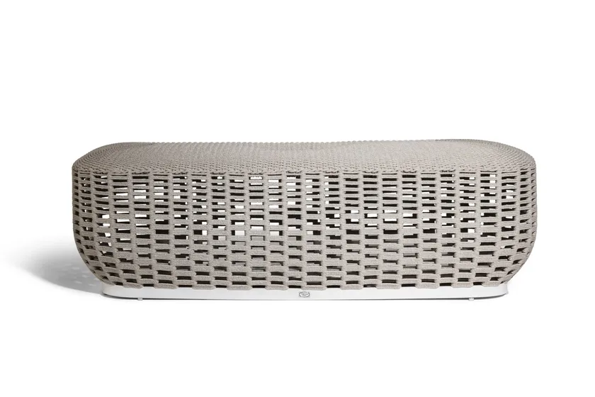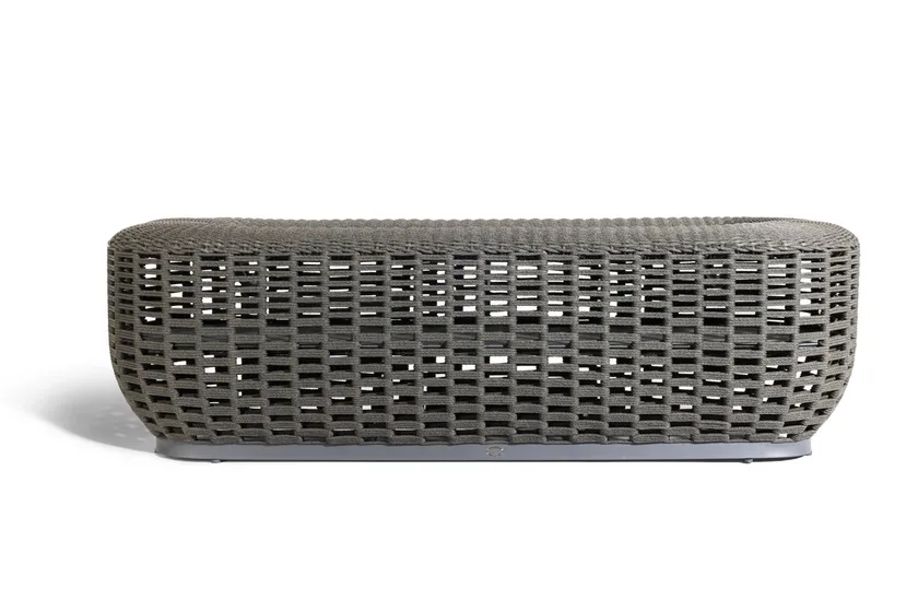 Die Nautical Rope Garden Bench verfügt über ein skulpturales Design, das durch seine fließenden Linien und das kunstvolle Weben geprägt ist. Die Liebe zum Detail zeigt sich in der Art und Weise, wie der Polypropylenfaden handgewebt wird, um eine zarte, aber langlebige Oberfläche zu schaffen. Das Zusammenspiel von Licht und Schatten durch das gewebte Muster verleiht dem Gesamtbild Ihrer Außenfläche einen künstlerischen Touch.