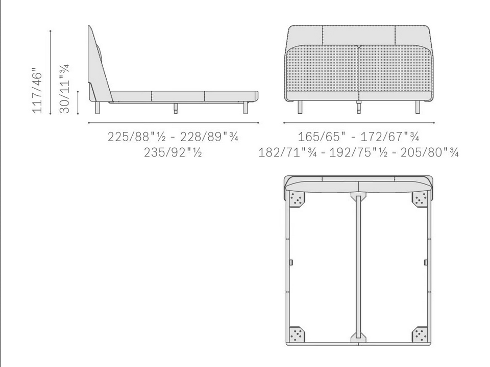 Dieses Bett integriert fortschrittliche Designlösungen, die sowohl Komfort als auch Stil gewährleisten. Die Verwendung von hochdichtem Polyurethanschaum bietet ausgezeichnete Unterstützung, während die präzise Handwerkskunst die Gesamtdauerhaftigkeit erhöht. Die Konstruktion des Bettes umfasst umweltfreundliche Materialien und zeigt das Engagement von Poltrona Frau für Nachhaltigkeit und Innovation im Möbeldesign.