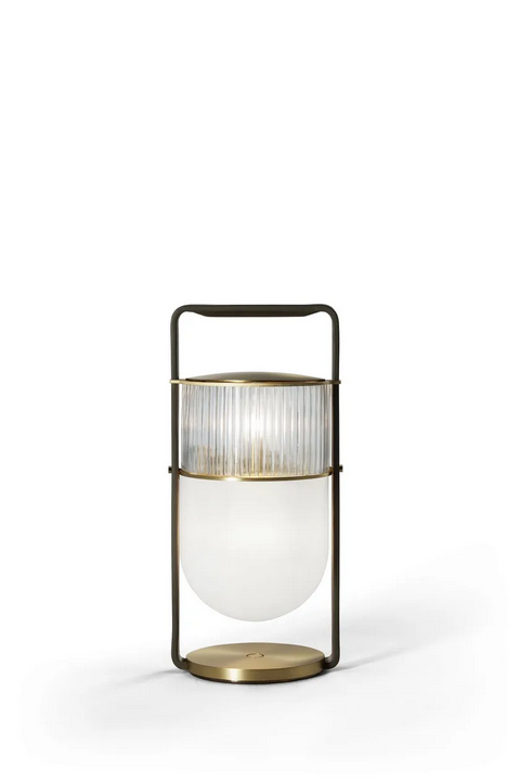 Diese Lampe verfügt über fortschrittliche Technologie, um das Benutzererlebnis zu verbessern. Das Touch-Dimmer-System bietet nahtlose Kontrolle über das Licht und sorgt für Komfort und Benutzerfreundlichkeit. Die Kombination aus zwei mundgeblasenen Glaselementen schafft eine einzigartige Lichtstreuung, die eine warme und einladende Atmosphäre erzeugt. Die verwendeten Materialien sind nicht nur ästhetisch ansprechend, sondern auch langlebig, was Langlebigkeit und anhaltende Schönheit im Laufe der Zeit gewährleistet.