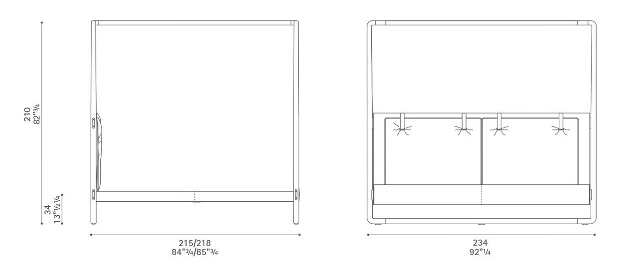 Das Canopy Bed Volare ist ein eigenständiges Stück, das als luxuriöse und komfortable Schlaflösung entworfen wurde. Seine elegante Himmelbettstruktur und die gepolsterte Kopfstütze schaffen ein kohärentes Aussehen und machen es zu einem Blickfang in jedem Schlafzimmer. Das Bett kann mit verschiedenen Bettwäscheoptionen und Accessoires ergänzt werden, um seine Attraktivität zu erhöhen.