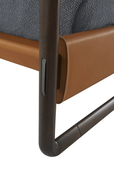 Das Design des Canopy Bed Volare betont Einfachheit und Raffinesse, mit seiner sich verjüngenden Himmelbettstruktur, die sich nach oben hin verjüngt. Die exquisite Detailarbeit, wie die gunmetal-grauen Oberflächen auf den Lederbändern und Ösen, erhöht seine ästhetische Anziehungskraft. Das Bett verfügt über große, gepolsterte Kissen, die an die Kopfstütze angeheftet sind und einen einladenden Look schaffen, der zur Entspannung einlädt. Das Gesamtbild ist eines von raffiniertem Luxus, geprägt von Liebe zum Detail und hochwertiger Verarbeitung.