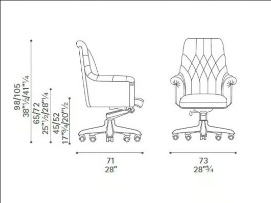 Der Executive Tufted Leather Chair Oxford ist so konzipiert, dass er eine breite Palette von Benutzern unterbringt, mit einer verstellbaren Sitzhöhe, die für verschiedene Schreibtischhöhen geeignet ist. Jeder Stuhl ist so gefertigt, dass er modernen ergonomischen Standards entspricht und optimalen Komfort und Unterstützung für alle Benutzer gewährleistet, was ihn zu einer vielseitigen Wahl für zeitgenössische Arbeitsumgebungen macht.