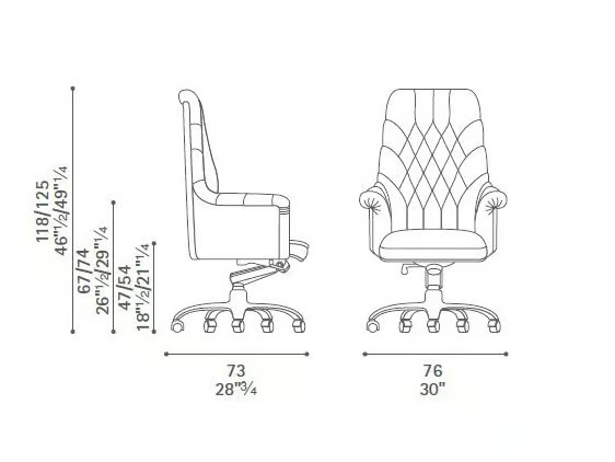 Das Design des Oxford-Stuhls zeichnet sich durch klare Linien und zeitlosen Charme aus. Die akribische Capitonné-Arbeit auf dem Lederbezug fügt Textur und Tiefe hinzu, während die ergonomische Form sowohl stilvoll als auch unterstützend ist. Die Liebe zum Detail zeigt sich in jedem Aspekt, von den eleganten Armlehnen bis zur robusten fünfstrahligen Basis, und schafft eine Gesamästhetik, die sowohl einladend als auch professionell ist.