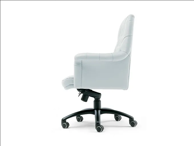 Dieser Stuhl verkörpert einen klassischen Stil, der traditionelle Linien mit zeitgenössischer Funktionalität verbindet. Der Einfluss vintage englischer Bürostühle ist in seiner raffinierten Silhouette offensichtlich, während die modernen Anpassungen sicherstellen, dass er den Anforderungen der heutigen Fachkräfte gerecht wird und einen einzigartigen visuellen Effekt erzeugt, der in jeder Büroumgebung heraussticht.