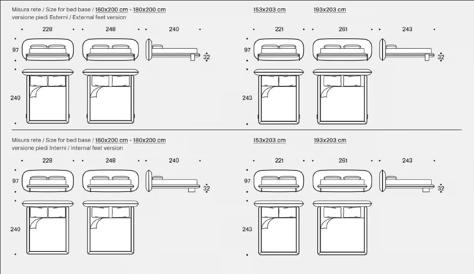 Das WABI Bett ist in mehreren Größen erhältlich, um verschiedenen Bedürfnissen gerecht zu werden: 153 cm (Queen-Size), 160 cm, 180 cm und 193 cm (King-Size). Diese Auswahl stellt sicher, dass Sie die perfekte Passform für Ihr Schlafzimmerlayout finden, und bietet sowohl Komfort als auch Stil. Jede Größe ist sorgfältig gestaltet, um den zeitgemäßen Standards für Schlafzimmermöbel gerecht zu werden, sodass Sie einen erholsamen Schlaf genießen können.