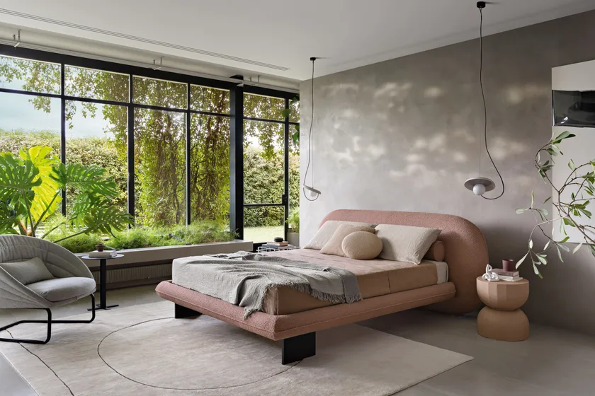 Die eleganten Kurven und sanften Konturen des WABI Bettes zeigen eine außergewöhnliche Handwerkskunst. Die Liebe zum Detail ist in der dekorativen Paspelierung entlang des Kopfendes und des Bettrahmens offensichtlich. Die Gesamt-Silhouette ist sowohl einladend als auch raffiniert und macht es zu einem perfekten Mittelpunkt für jedes moderne Schlafzimmer.
