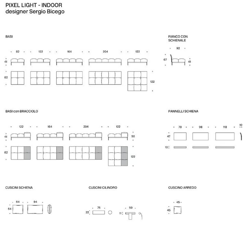 Das Pixel Light Outdoor Sofa ist in verschiedenen Konfigurationen erhältlich, die es Ihnen ermöglichen, die ideale Größe und Anordnung für Ihren Raum auszuwählen. Die Optionen reichen von einzelnen Eckstücken bis hin zu größeren Kompositionen, die mehrere Benutzer aufnehmen können. Jede Größe ist mit dem Benutzerkomfort im Hinterkopf gestaltet, sodass das Sofa modernen Standards für Funktionalität und Stil gerecht wird.