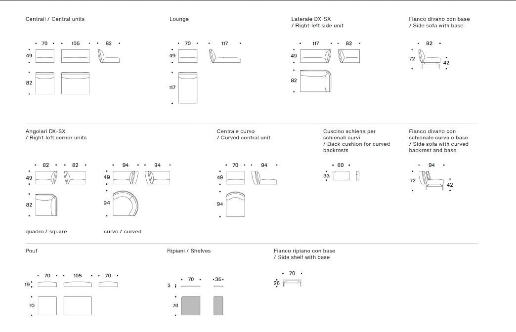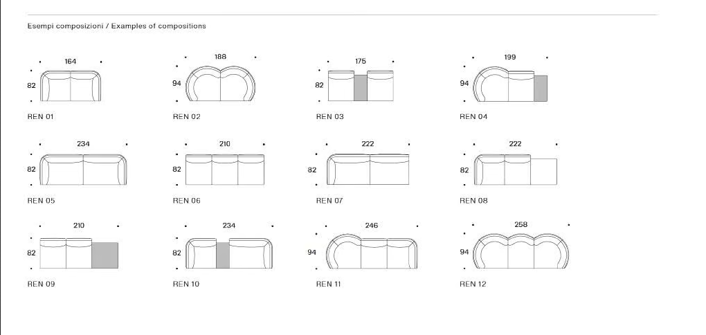 Das RENDEZ-VOUS Sectional Sofa ist in verschiedenen Größen erhältlich, die es ermöglichen, bequem in unterschiedlichen Räumen Platz zu finden. Während die spezifischen Abmessungen variieren können, gewährleistet das modulare Design, dass jedes Stück sorgfältig für maximale Nutzbarkeit dimensioniert ist. Diese Flexibilität ermöglicht es den Benutzern, ihre ideale Sitzanordnung zu schaffen, die sowohl große Zusammenkünfte als auch intime Umgebungen berücksichtigt.