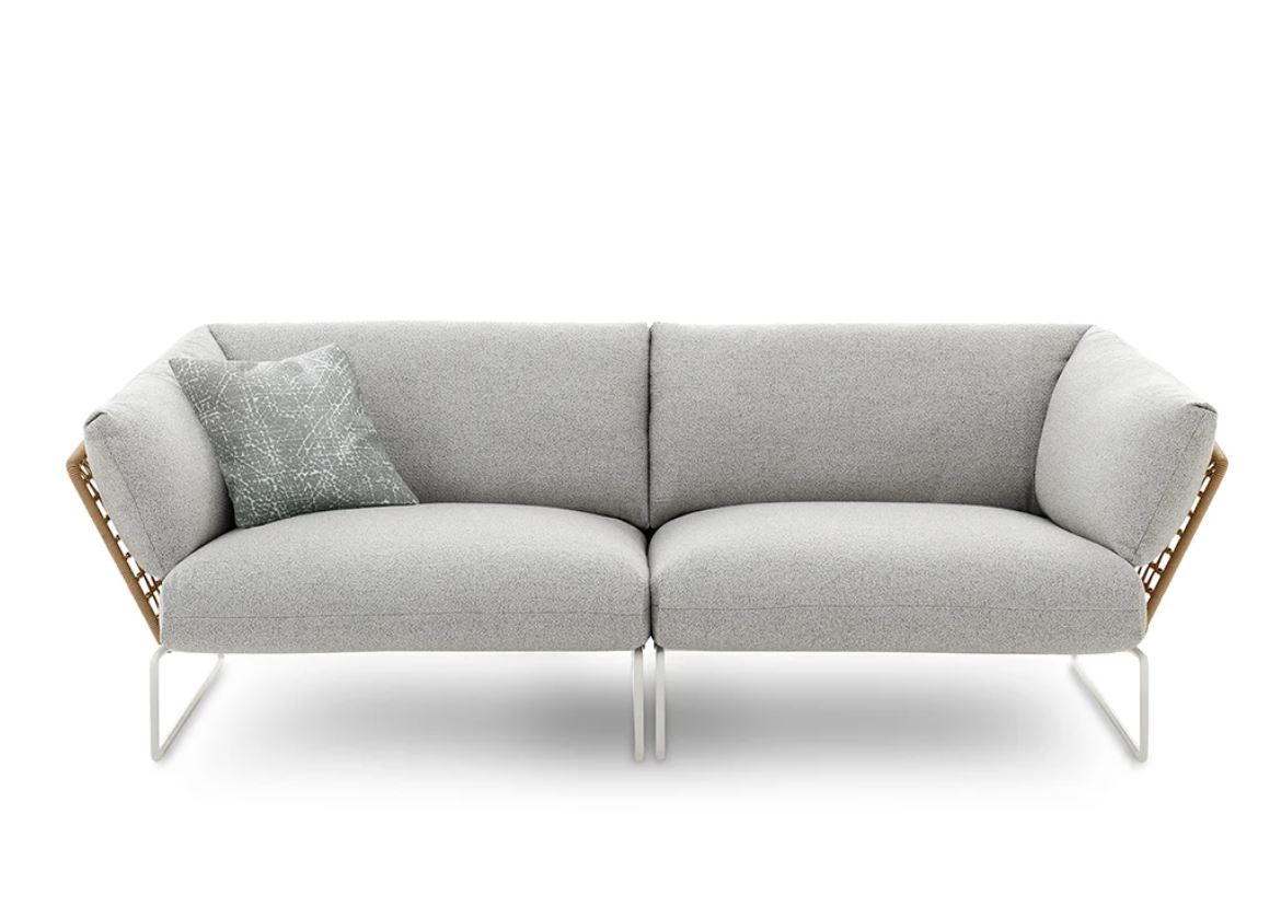 Das New York Soleil Sofa zeichnet sich durch klare Linien und ein einladendes Design aus, das das Gesamtbild jedes Außenbereichs verbessert. Die filigranen Details, wie die handgewebten nautischen Schnüre und die plüschigen Kissen, betonen die Liebe zum Detail und die Qualität der Handwerkskunst, während die abnehmbaren Bezüge Praktikabilität bieten, ohne den Stil zu beeinträchtigen.