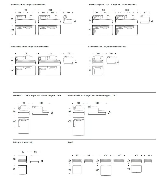 Das Livingston-Sofa ist in mehreren Konfigurationen erhältlich, die unterschiedlichen Raumanforderungen gerecht werden. Standardgrößen umfassen Optionen, die sowohl für kompakte als auch für geräumige Wohnräume geeignet sind. Das durchdachte Design gewährleistet maximalen Komfort und Benutzerfreundlichkeit, im Einklang mit modernen Standards für Möbeldimensionen.