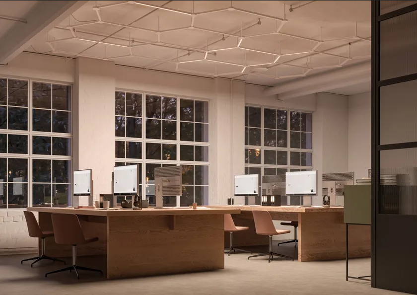 Die Modular Ceiling Lamp ist mit Vielseitigkeit im Hinterkopf gestaltet. Sie ermöglicht die Installation von linearen Beleuchtungsprofilen in verschiedenen Konfigurationen und ermöglicht unterschiedliche Lichtorientierungen und -geometrien. Diese Anpassungsfähigkeit stellt sicher, dass die Lampe unterschiedlichen Beleuchtungsbedürfnissen gerecht wird, sei es für Ambientebeleuchtung oder Aufgabenbeleuchtung, und macht sie zu einer praktischen Ergänzung für jeden Raum.