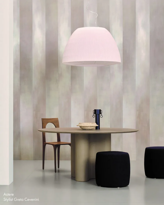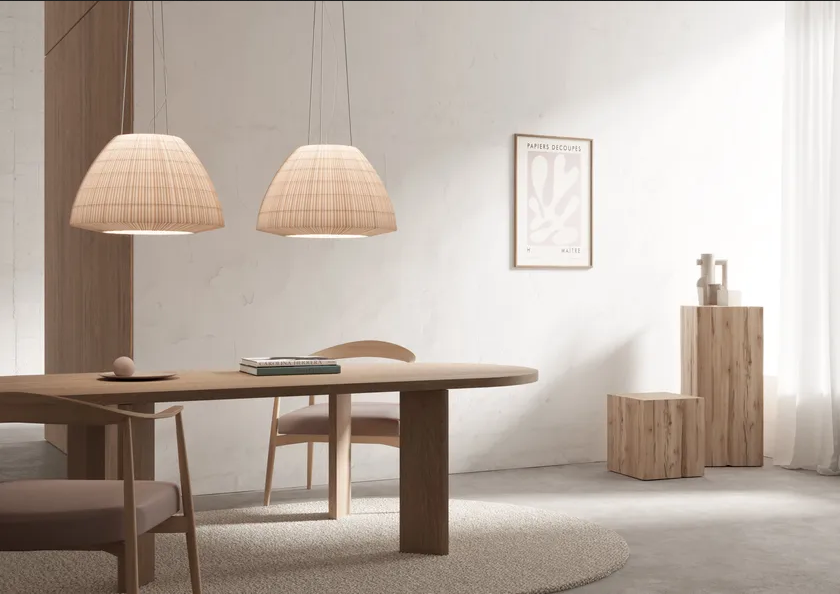 Diese Pendelleuchte verkörpert einen modernen Stil, der durch klare Linien und einen minimalistischen Ansatz gekennzeichnet ist. Die BELL-Lampe kombiniert traditionell Elemente mit zeitgenössischem Design und schafft so einen einzigartigen visuellen Eindruck. Ihre markante Form und Stoffdetails positionieren sie als Statement-Stück, das für verschiedene Umgebungen geeignet ist, von gemütlichen Küchen bis hin zu eleganten Essbereichen.