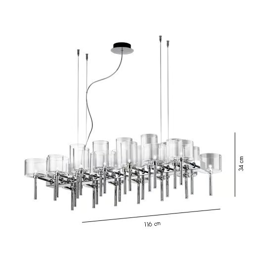 Die Spillray-Lampe ist fachgerecht aus hochwertigem Glas und langlebigem Metall gefertigt, was sowohl Schönheit als auch Langlebigkeit gewährleistet. Das verchromte Finish verleiht einen modernen Touch, während die Glasschirme in transparenten, roten und grauen Optionen erhältlich sind, die eine anpassbare Ästhetik ermöglichen. Die verwendeten Materialien sind umweltfreundlich und entsprechen internationalen Standards, was sicherstellt, dass Ihre Wahl sowohl stilvoll als auch nachhaltig ist.