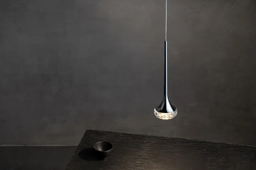 Die Lampe besteht aus hochwertigem Aluminium und Kristall, was Langlebigkeit gewährleistet und gleichzeitig ein elegantes Erscheinungsbild bewahrt. Die verchromte Oberfläche verstärkt nicht nur die moderne Ästhetik, sondern sorgt auch für einen schlanken und polierten Look. Die verwendeten Materialien sind umweltfreundlich und gemäß internationalen Nachhaltigkeitsstandards beschafft, was das Engagement des Herstellers für umweltbewusste Produktion unterstreicht.