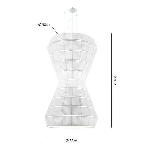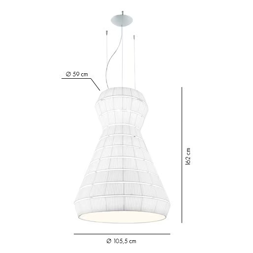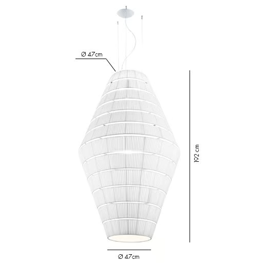 Die Lampe ist so konzipiert, dass sie eine E27-Lichtquelle aufnehmen kann, die Optionen für verschiedene Lampentypen bietet. Ihre Abmessungen reichen von einem Durchmesser von 93 cm bis zu beeindruckenden 300 cm, mit Lampenschirmlängen von bis zu 290 cm. Diese Bandbreite ermöglicht erhebliche Vielseitigkeit bei Installation und Design und macht sie geeignet für große Räume oder intime Einstellungen. Das technische Design gewährleistet eine einfache Installation und Kompatibilität mit standardmäßigen elektrischen Systemen.