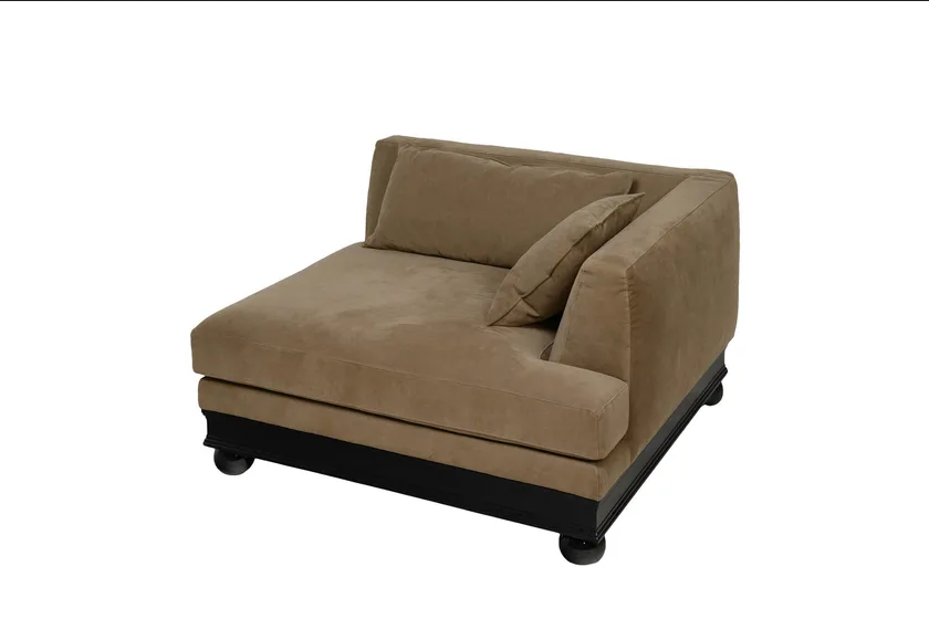 Der Eck-Cotton-Sessel Paris Extra von CHELINI FIRENZE ist ein exquisite Stück, das Eleganz und Komfort vereint. Dieser Sessel ist Teil der modularen Sofa-Komposition Paris Extra, was ihn vielseitig für verschiedene Innenraumgestaltungen macht. Sein klassischer Holzfuß, der in einem glänzenden schwarzen Lack vollendet ist, ergänzt die weiche braune Baumwollhülle und bietet sowohl ästhetische Anziehungskraft als auch gemütliches Sitzen. Dieser Sessel ist perfekt für Wohnzimmer, Lounges oder Leseecken und bietet einen stilvollen Blickfang in jedem Raum.