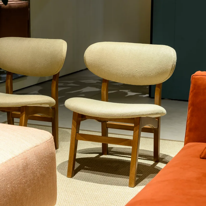 Mit seinen raffinierten Kurven und der eleganten Polsterung exemplifiziert der LITTLE INGA Stuhl durchdachtes Design. Die Liebe zum Detail zeigt sich in jedem Aspekt, von der glatten Oberfläche des Holzes bis zum sorgfältig maßgeschneiderten Stoff. Das Gesamtbild des Stuhls ist sowohl sophisticated als auch einladend, was ihn zu einer idealen Wahl für Esszimmer, Wohnbereiche oder sogar als eigenständiges Akzentstück macht.