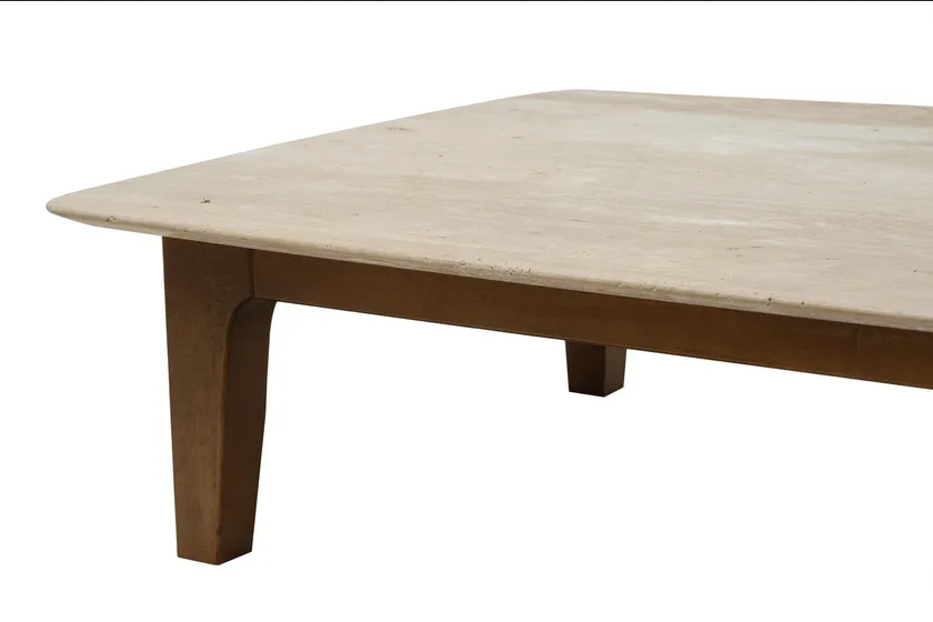 Die Ästhetik des YVAN-Couchtisches zeichnet sich durch seine eleganten Proportionen und raffinierten Details aus. Die konischen Beine verleihen eine luftige Qualität, während die glatten, abgerundeten Kanten der Travertin-Oberfläche ihre Weichheit unterstreichen. Das exquisite Finish auf dem Holz hebt nicht nur seine natürliche Maserung hervor, sondern verleiht dem Gesamtdesign auch ein luxuriöses Gefühl. Jeder Aspekt wurde durchdacht gestaltet, um ein Stück zu schaffen, das sowohl schön als auch funktional ist und somit eine perfekte Ergänzung für jedes moderne Zuhause darstellt.
