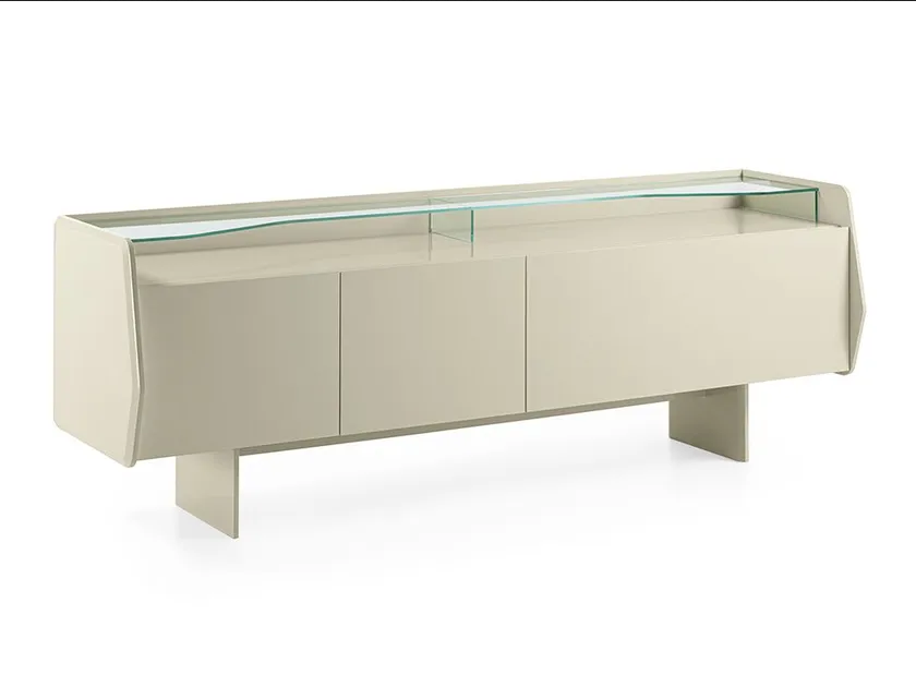 Das Gastone-Sideboard integriert fortschrittliche Technologie in sein Design und ermöglicht Funktionen wie integrierte Beleuchtungsoptionen und sanfte Öffnungsmechanismen. Diese Elemente verbessern die Funktionalität und sorgen zugleich für ein modernes Benutzererlebnis. Die Verwendung von 8 mm extraleichtem Sicherheitsglas für das obere Regal fügt eine zusätzliche Ebene von Raffinesse und Haltbarkeit hinzu.