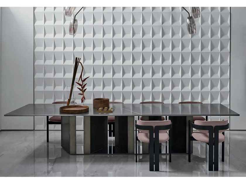 Der PLATIUM SYSTEM Tisch verfügt über ein modulares Design mit Abmessungen, die auf verschiedene Räume abgestimmt sind. Die Größe des Tisches wurde sorgfältig überlegt, um ein Gleichgewicht zwischen Funktionalität und Stil zu gewährleisten, wodurch er sowohl für intime Zusammenkünfte als auch für größere Essens- und Veranstaltungserlebnisse geeignet ist. Weitere Anpassungsoptionen sind möglicherweise verfügbar, um spezifischen Designbedürfnissen gerecht zu werden.