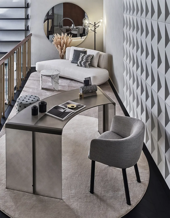 Obwohl der Schreibtisch möglicherweise keine fortschrittlichen technologischen Lösungen integriert, priorisiert sein Design den Komfort des Benutzers und die ästhetische Anziehungskraft. Der Fokus auf hochwertige Materialien und Handwerkskunst gewährleistet Haltbarkeit und ein zeitloses Aussehen. Die Integration von Kabelmanagementlösungen spiegelt einen modernen Ansatz zur Organisation des Arbeitsplatzes wider und zeigt Gallotti&Radices Engagement, den zeitgenössischen Bedürfnissen gerecht zu werden.