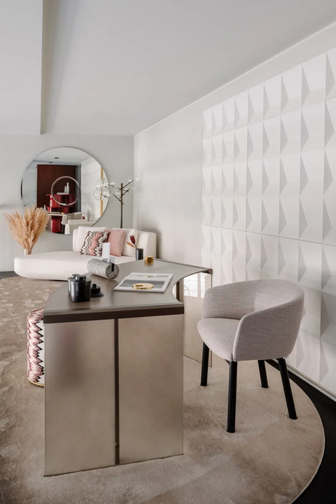 Der Crystal Writing Desk ist ein eigenständiges Stück, das darauf ausgelegt ist, durch andere Elemente der President-Kollektion ergänzt zu werden. Sein elegantes Design macht ihn geeignet für die Kombination mit verschiedenen Sitzmöglichkeiten und Accessoires, um einen kohärenten Look in Ihrem Arbeitsplatz zu ermöglichen.