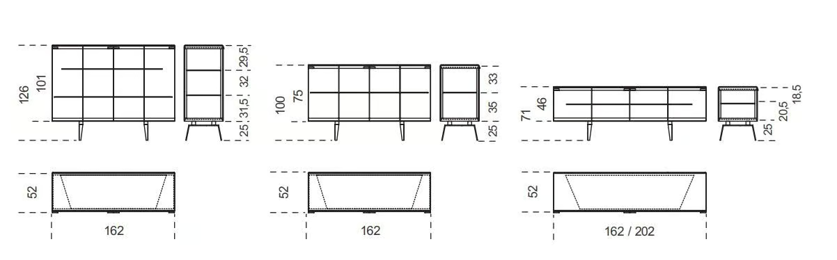 Der PANDORA-Sideboard ist so konzipiert, dass er perfekt in moderne Haushalte passt. Seine Abmessungen sind durchdacht gestaltet, um sicherzustellen, dass er in verschiedenen Räumen verwendet werden kann, ohne Stil oder Funktion zu beeinträchtigen. Das schlanke Design ermöglicht es, eine Vielzahl von Einrichtungsstilen zu ergänzen und macht ihn zu einer vielseitigen Ergänzung Ihrer Wohnmöbel.