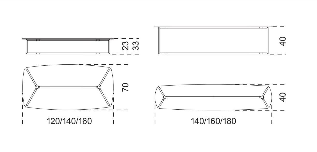 Der RAJ 6 Couchtisch ist in einer standardmäßigen rechteckigen Größe erhältlich, die für verschiedene Wohnräume geeignet ist. Seine Abmessungen sind so gestaltet, dass sie ein perfektes Gleichgewicht zwischen Funktionalität und Stil bieten und sicherstellen, dass er sowohl in kleinen als auch in großen Räumen bequem passt. Die durchdachte Größe macht ihn zu einer idealen Option für modernes Wohnen und berücksichtigt unterschiedliche Lebensstile und Designvorlieben.