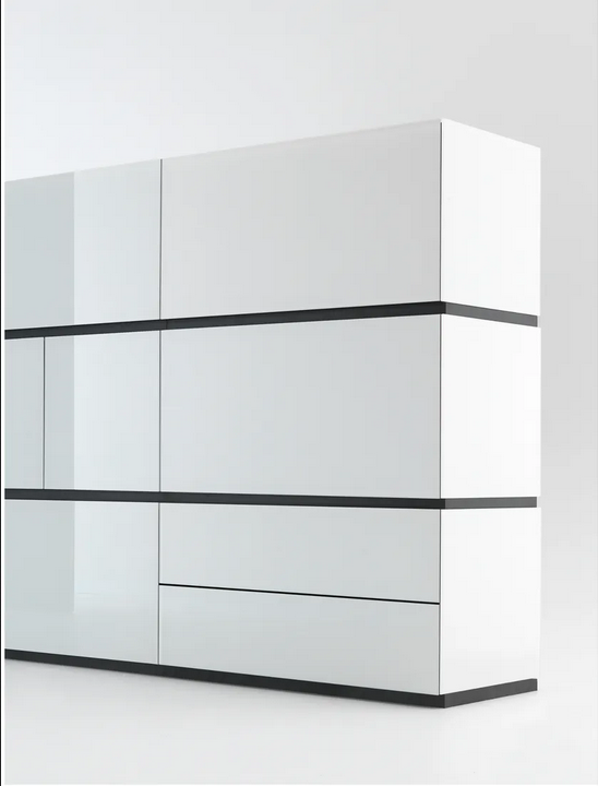 Die AIR UP-Lagereinheit zeigt exquisite Designdetails, von den eleganten Linien bis zu den eleganten Oberflächen des lackierten Glases und Holzes. Jedes Element ist präzise gefertigt und hebt die Qualität der Handwerkskunst hervor. Der ästhetische Reiz der Einheit wird durch ihren minimalistischen Ansatz verstärkt, der es ihr ermöglicht, sowohl als funktionale Lagereinheit als auch als auffälliges visuelles Element im Arbeitsbereich zu fungieren.