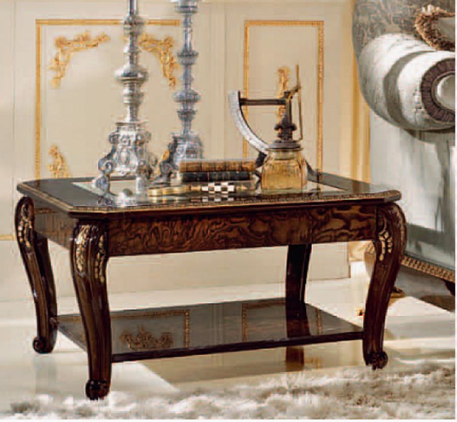 Ein klassischer quadratischer Ständer mit schmalen Beinen, die mit geschnitzten Elementen dekoriert sind, wird von der Fabrik A. R. ARREDAMENTI SRL in der Sammlung AMADEUS präsentiert. Der Ständer ist mit einer glasarbeitsplatte und einem unteren Regal ausgestattet. Hergestellt aus massivem Naturholz und & amp;nbsp; dekoriert mit handgefertigten kunstschnitzereien