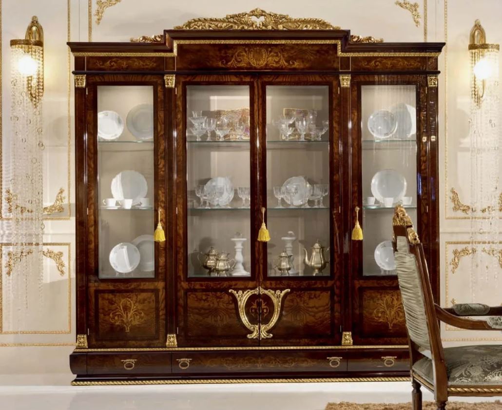 Viertürige Bücherregal verziert. klassischen Stil präsentiert italienische Fabrik A. R. ARREDAMENTI SRL in der Sammlung AMADEUS. Die Schranktüren sind mit dem Zusatz von Glas, die Rückwand ist mit Stoff gepolstert. der Schrank ist mit drei Schubladen ausgestattet, hergestellt & amp;nbsp; aus massivem Naturholz. Dekoriert mit Intarsien und & amp;nbsp; Künstlerische Schnitzereien in Form von locken