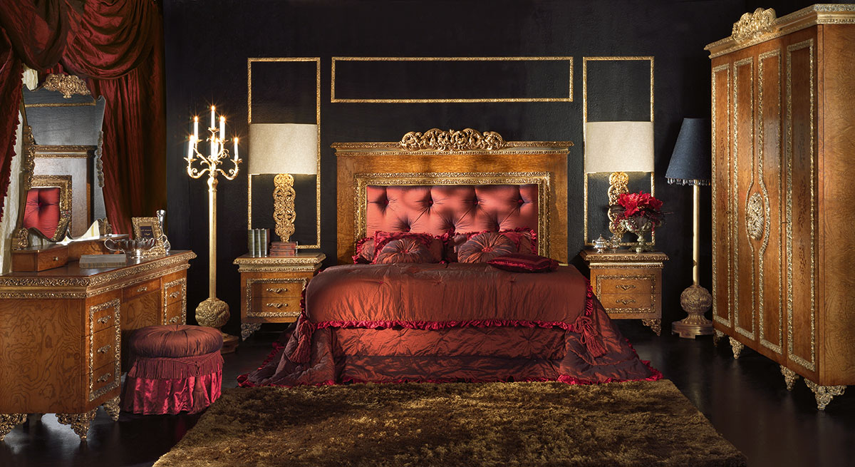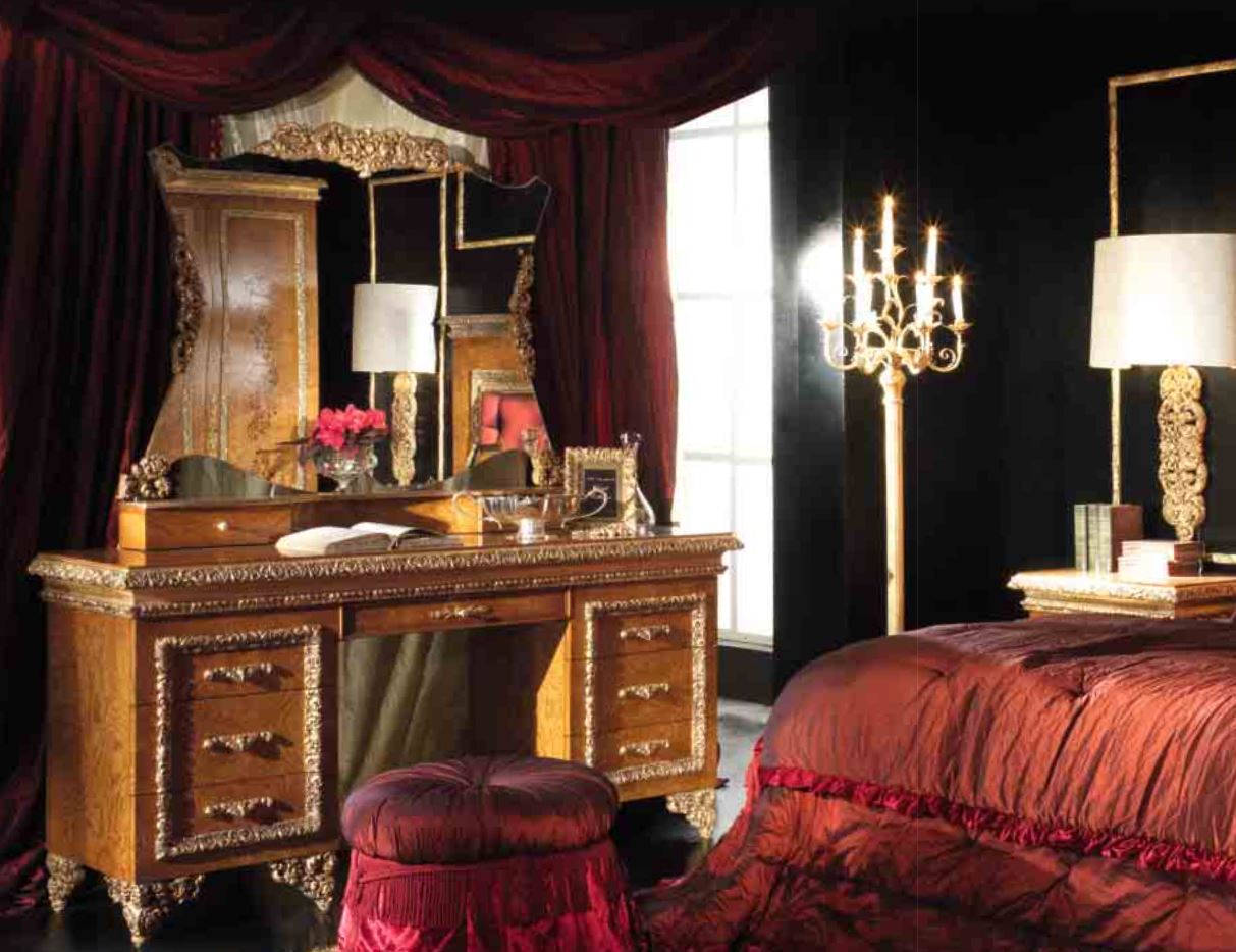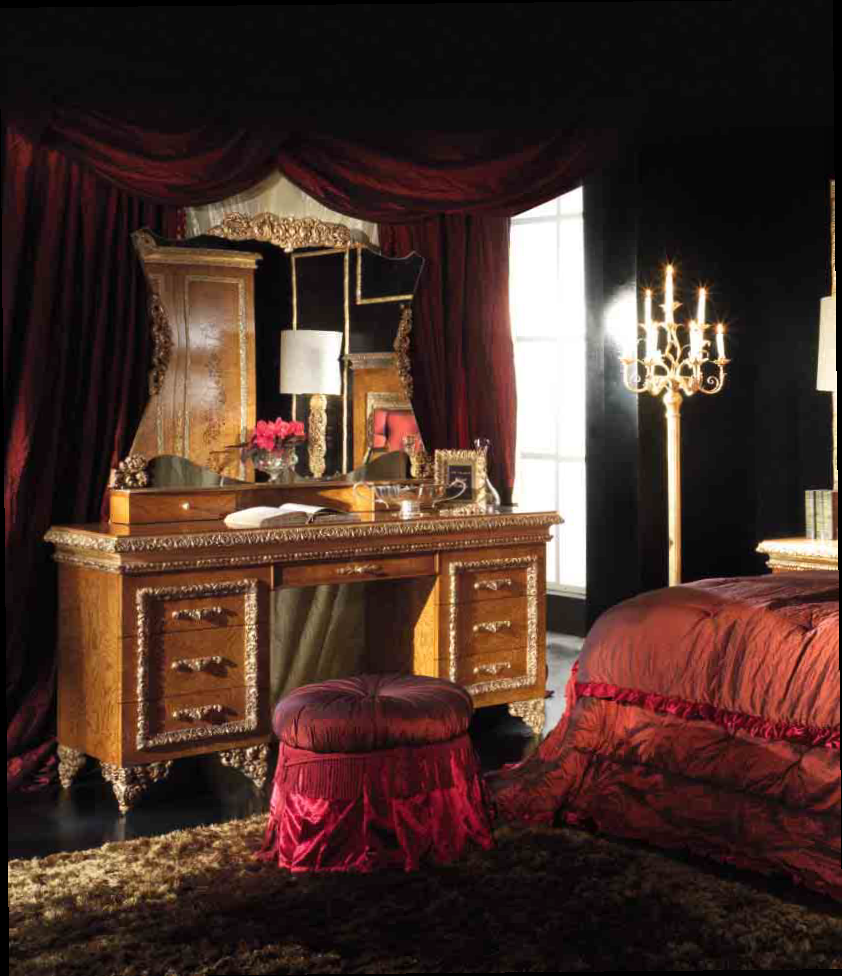 Der Schminktisch im klassischen Stil wird von der Fabrik A. R. ARREDAMENTI SRL in der & amp;nbsp; ROYAL COLLECTION präsentiert. Tischbeine, kunstvoll dekoriert handgefertigte kunstschnitzereien harmonieren harmonisch mit der anmutigen Oberfläche der Tischkante. Der Tisch ist mit sieben Schubladen ausgestattet, hergestellt aus massivem Naturholz