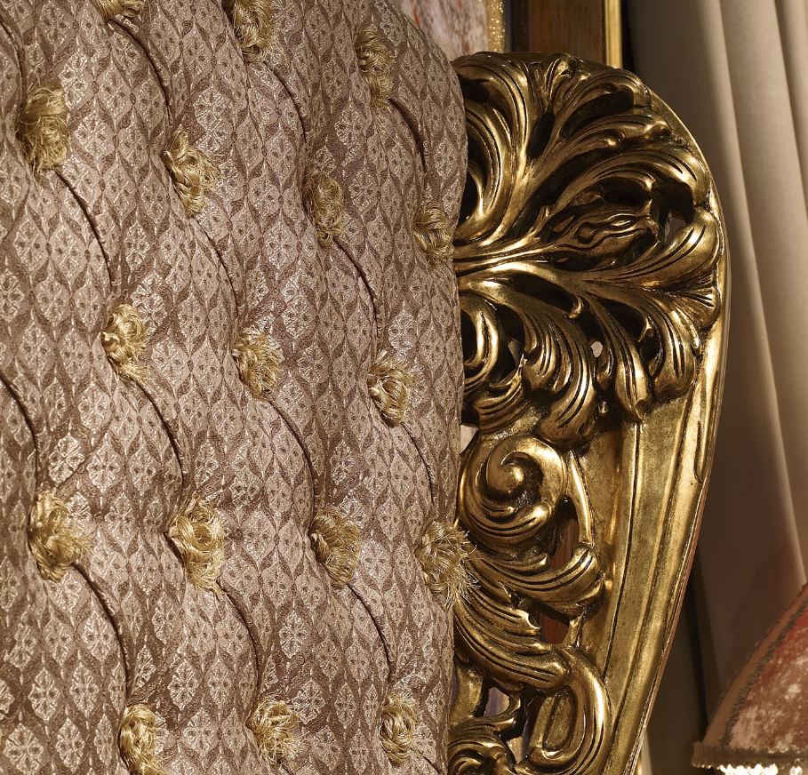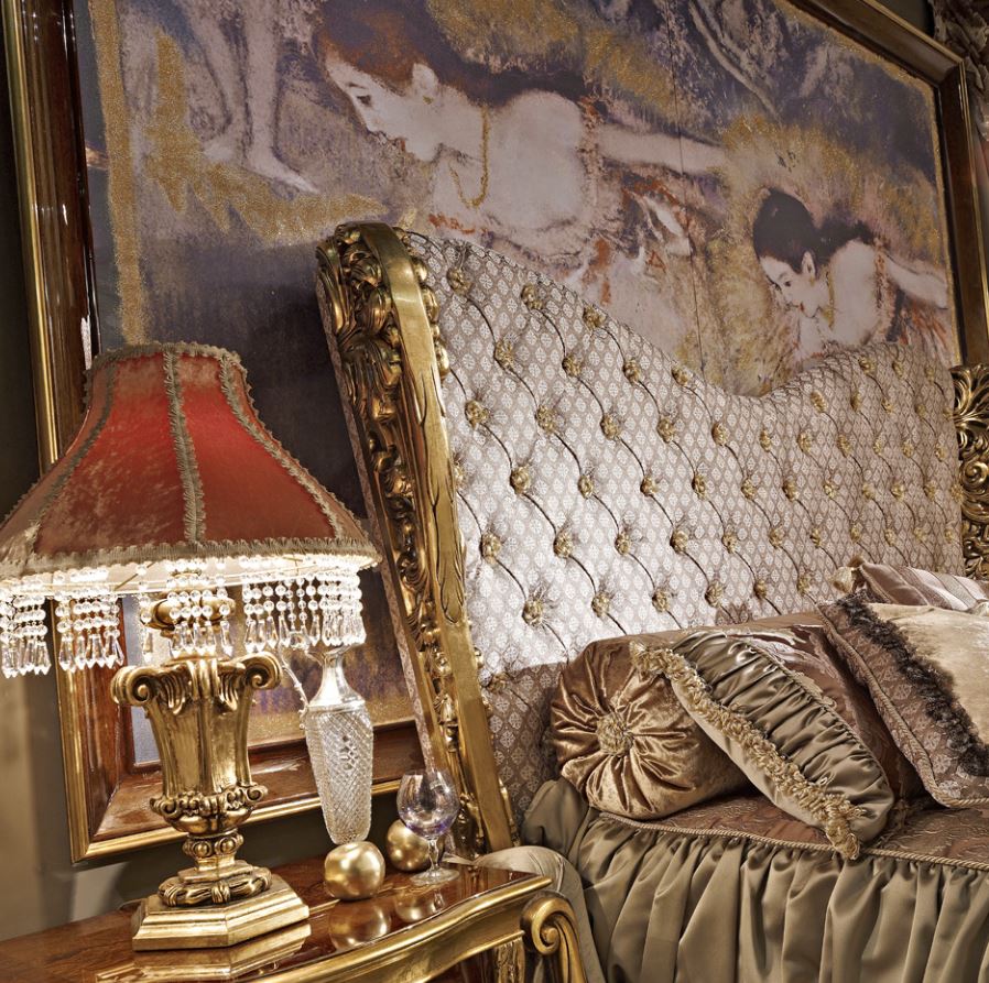 Ein Doppelbett ohne Fuß, mit einem hohen weichen Kopfteil, dekoriert mit handgefertigten kunstschnitzereien wird von der Fabrik  präsentiert;A. R. ARREDAMENTI SRL in der Sammlung & amp;nbsp; CELEBRITY. Das Figürliche Kopfteil des Bettes ist mit einem kapitone-Stich bestickt. Das Bett ist mit einem Rahmen ausgestattet. Das Netz ist nicht im Preis inbegriffen. Um das Bild zu vervollständigen, ist eine Bestellung von Zubehör verfügbar: Kissen und decken