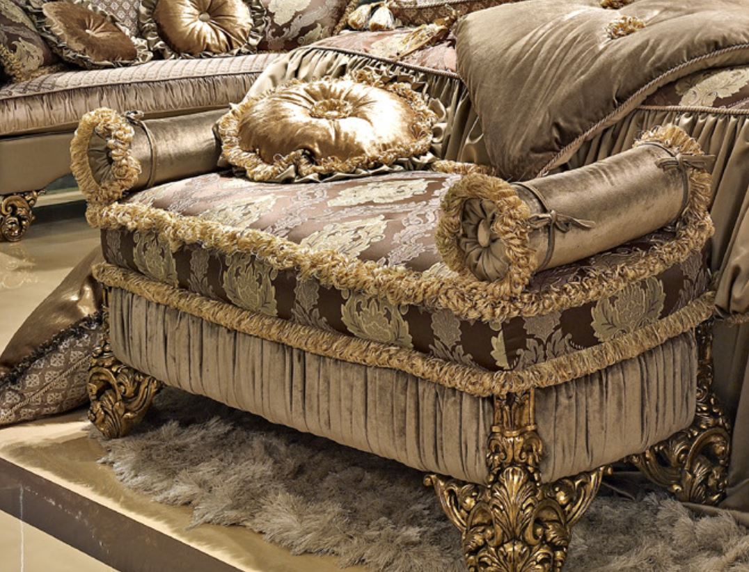 Bankette auf geschnitzten geschweiften Beinen, künstlerischen Schnitzereien verzierte handgemachte vorgestellt Fabrik A. R. ARREDAMENTI SRL in der Kollektion CELEBRITY. Ausgestattet mit Kissen-Kissen.& amp;nbsp; Aus massivem Naturholz, Polsterung ist Stoff, Füllung ist Polyurethan