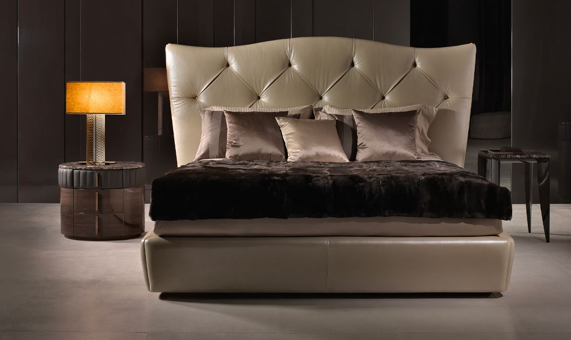 Das Bett wird im Art-Deco-Stil von der italienischen Fabrik SIGNORINI COCO&C, der Daytona-Kollektion, präsentiert. Das Bett ist mit Leder gepolstert. Gefüllt mit Polyurethanschaum.