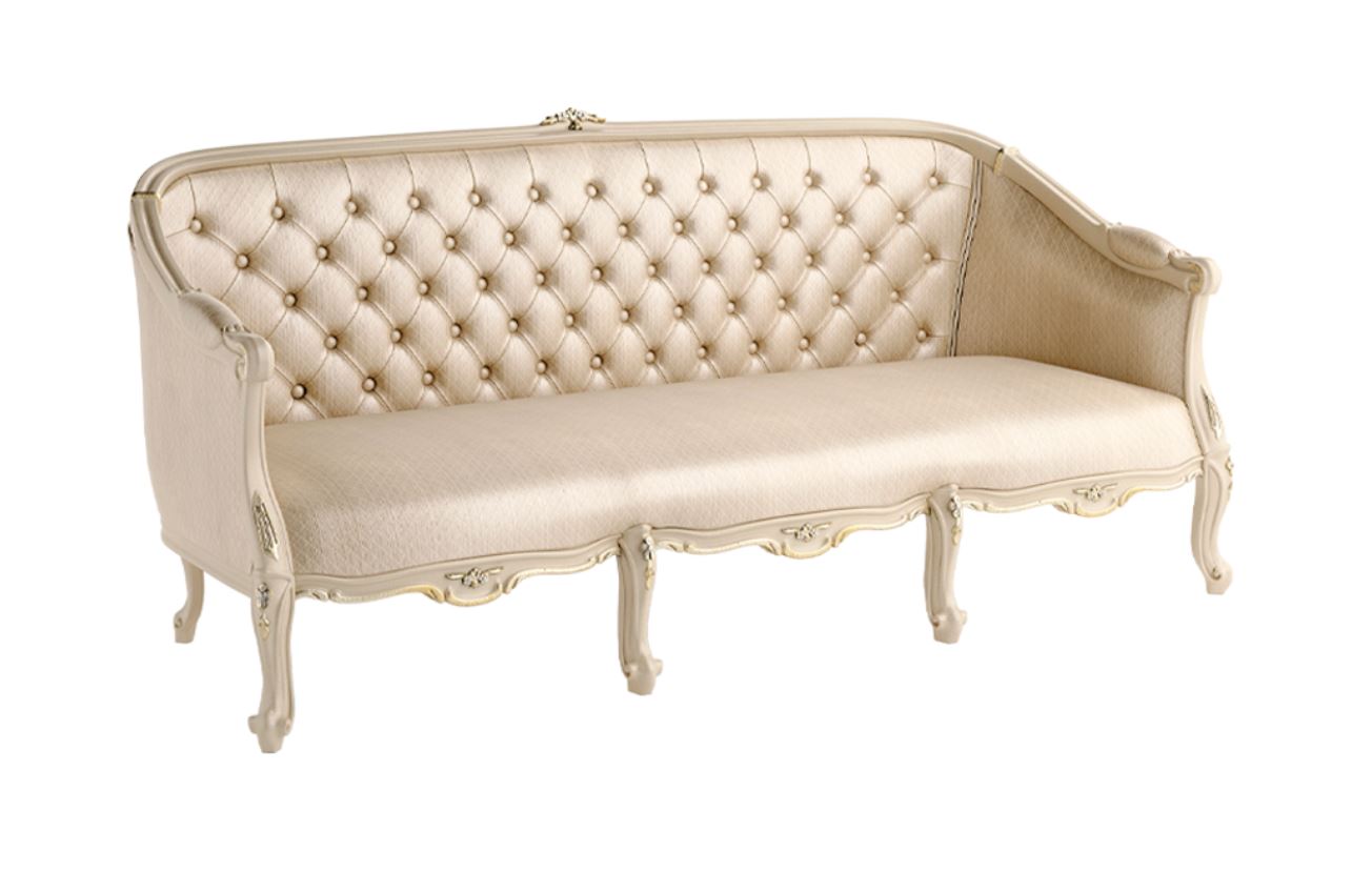 Sofa, präsentiert im klassischen Stil der italienischen Fabrik SIGNORINI COCO&C, Kollektion Forever. Aus Massivholz, & amp;nbsp; Sitz und Rückenlehne mit Stoff gepolstert, Rückenlehne genäht capitone. Es sind andere Varianten der Ausstattung und der Polsterung möglich.