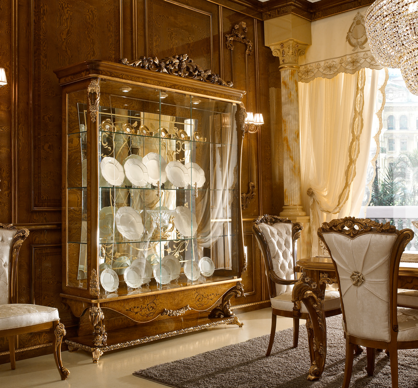 Dekoriert im klassischen Stil der zweitürige Vitrine mit Beinen, die in Form von bizarren locken vorgestellt Fabrik A. R. ARREDAMENTI SRL in der Kollektion DOLCE VITA. Die Vitrine ist mit eingelegten Glasregalen und einem offenen Regal an der Unterseite ausgestattet,Ihre Konstruktion ist aus massivem Naturholz mit Glas und dekoriert mit handgefertigten kunstschnitzereien. verfügbar, um Produkte mit anderen Parametern & amp; nbsp;