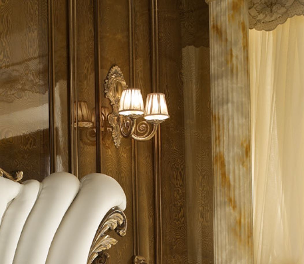 Nutzen Inbegriff der Klassik, нашедшем Ihr Spiegelbild in der Wand Wandleuchter mit zwei Tönen, die italienische Fabrik A. R. ARREDAMENTI SRL in der Kollektion DOLCE VITA. Geschnitzte krakas für Wandleuchte hergestellt & amp;nbsp; aus Messing, Stoff Lampenschirme sind in weißer Farbe