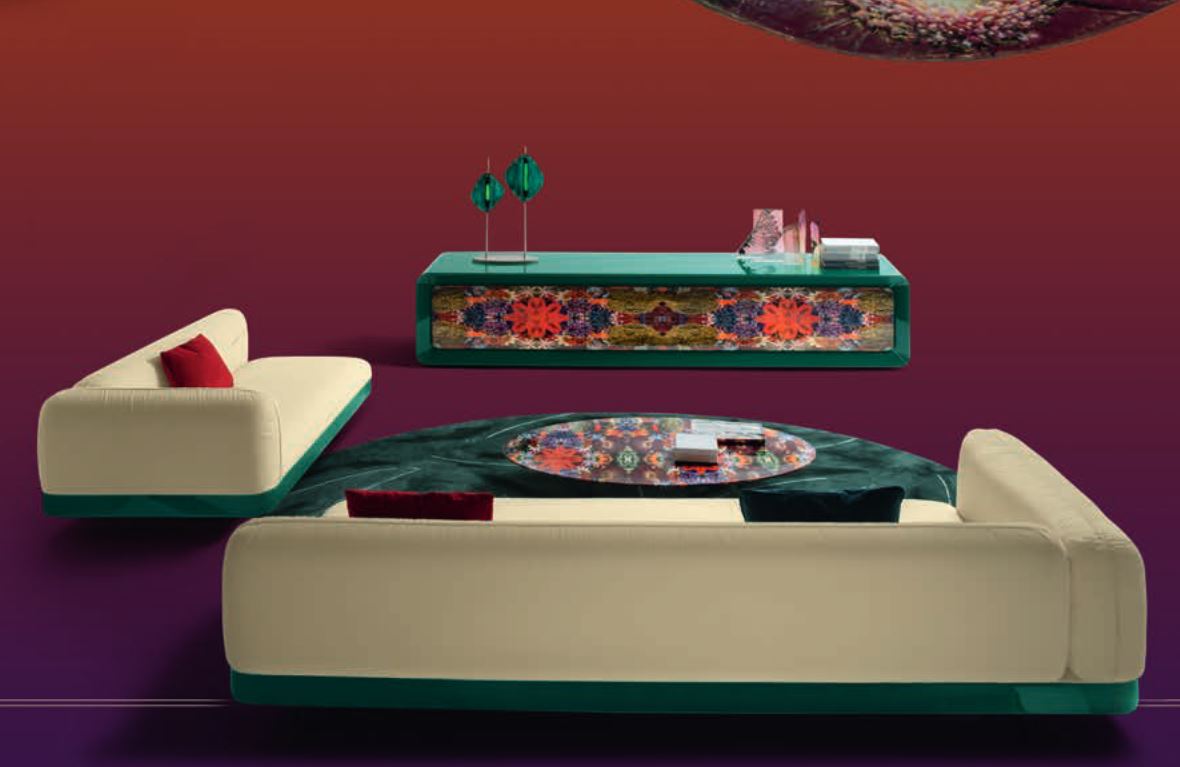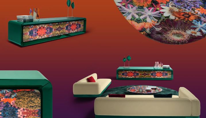 Entwicklung der SIGNORINI COCO-Fabrik. TV-Schrank DAISY aus der DAYTONA-Fabrik aus der WONDERLAND-Kollektion. Sperrholzplatte mit MDF-Futter. Beine aus extra klarem Plexiglas mit Verlaufsfarbe. Der obere Teil ist lackiert oder mit einem Muster verziert.