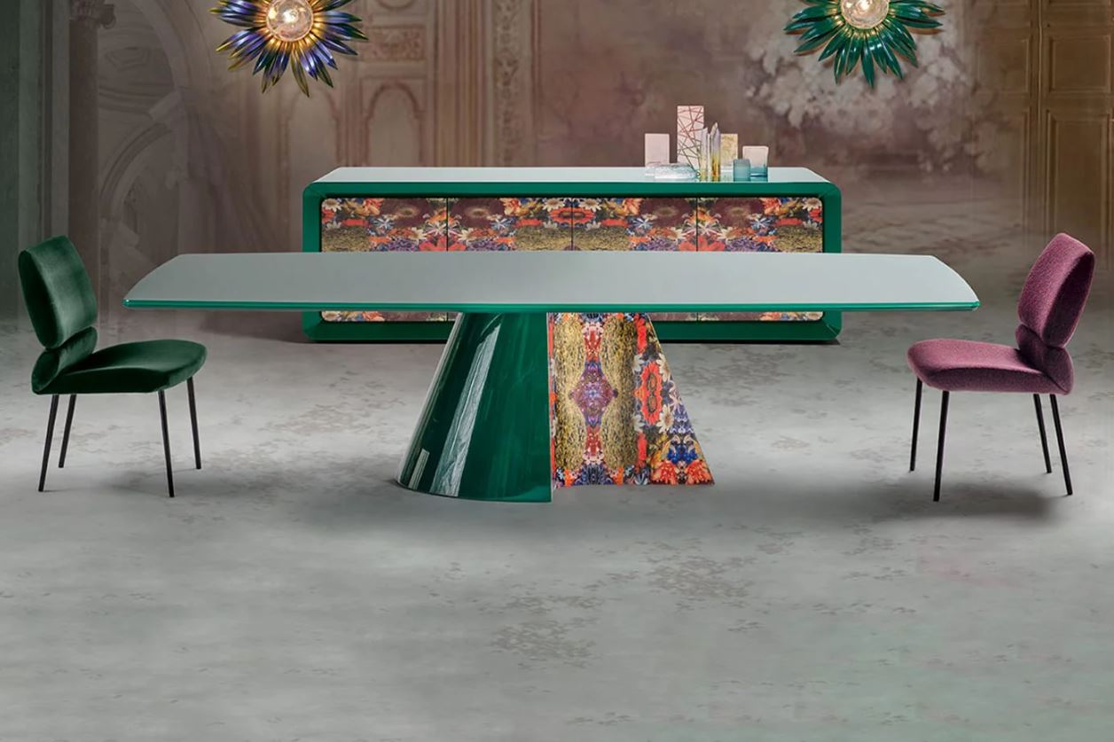 Entwicklung der SIGNORINI COCO-Fabrik. Nachttisch DAISY Fabrikkollektion DAYTONA WONDERLAND. Der obere und untere Teil der Struktur besteht aus mehrschichtigem MDF-Sperrholz. Glänzende Lackierung und Muster auf der Basis und Oberseite.
