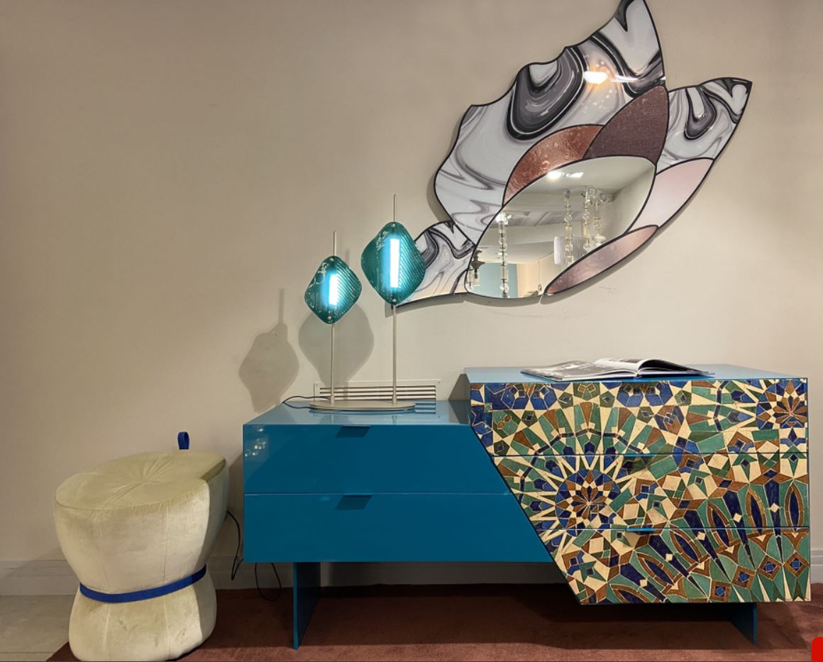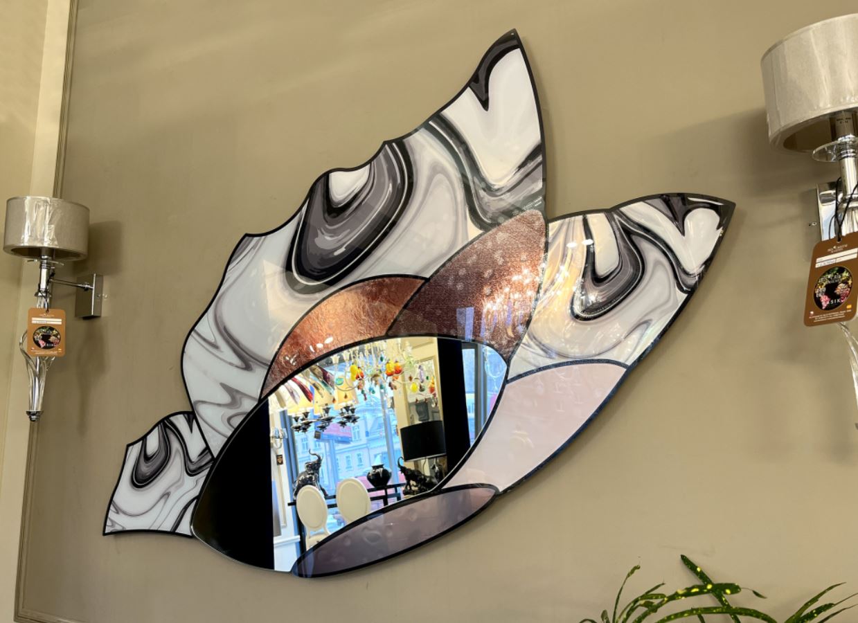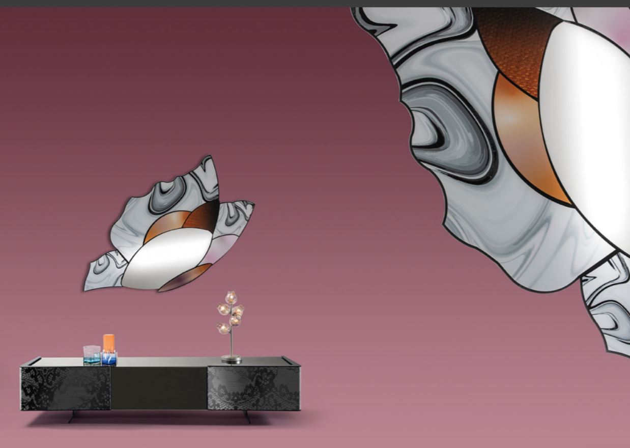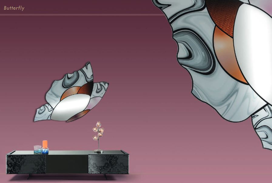 Entwicklung der SIGNORINI COCO-Fabrik. Spiegel BUTTERFLY Fabrik DAYTONA Kollektion WONDERLAND. Hergestellt aus Kristall, dekoriert und verarbeitet mit innovativen Technologien. Rückwandkonstruktion aus Sperrholz und lackiertem MDF